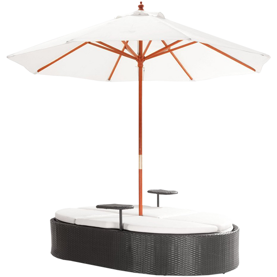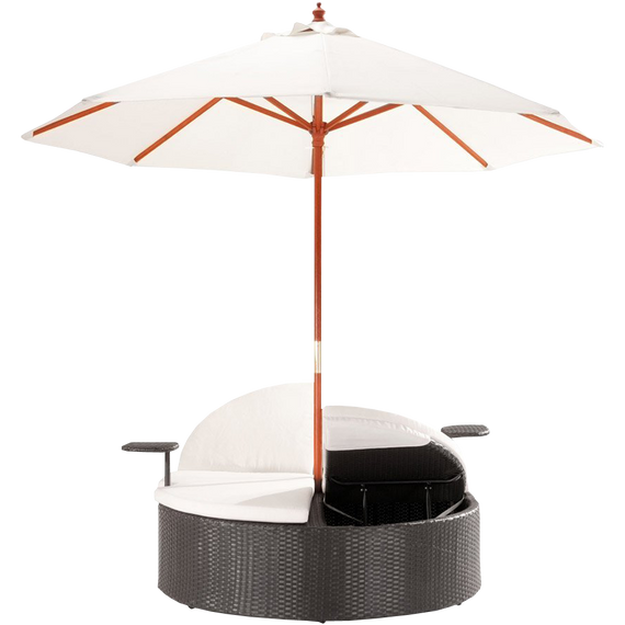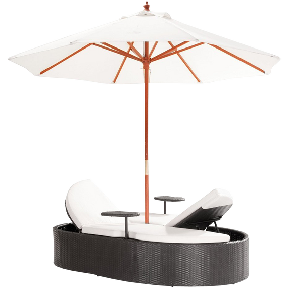 Marbella Espresso Outdoor Patio Double Chaise Lounge Bed with Umbrella